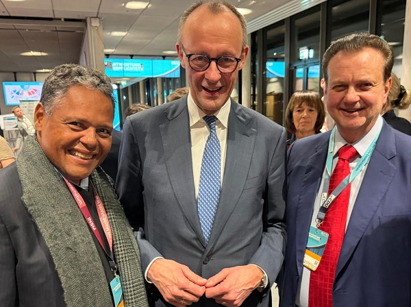 O presidente nacional do PSD, Gilberto Kassab, e o líder da bancada federal do partido, deputado Antonio Brito, se reuniram, nesta sexta-feira (20), com o chanceler da Alemanha, Friedrich Merz, na cidade de Stuttgart. O encontro ocorreu durante o 38º Congresso da CDU (União Democrata Cristã), agenda internacional que fortalece o diálogo entre a União Europeia, a América do Sul e países de outros continentes, com partidos de centro.