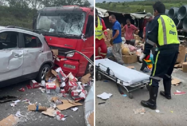 Um acidente envolvendo uma carreta, um caminhão e um automóvel, foi registrado no início da tarde desta sexta-feira (20), na BR 116, trecho entre os municípios de Irajuba e Brejões, próximo a estrada vicinal de acesso ao município de Santa Inês.